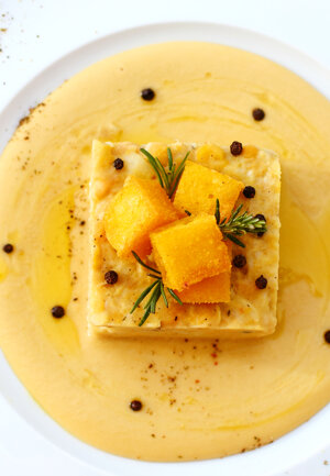 Baccalà mantecato con ceci e crostini di polenta