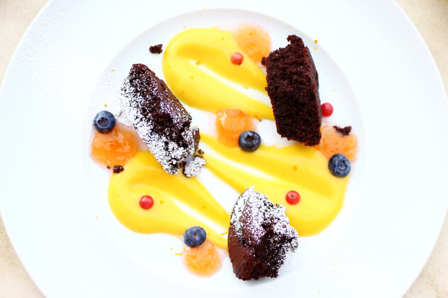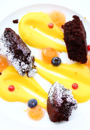 Tenerina al cioccolato fondente con crema inglese all'arancia