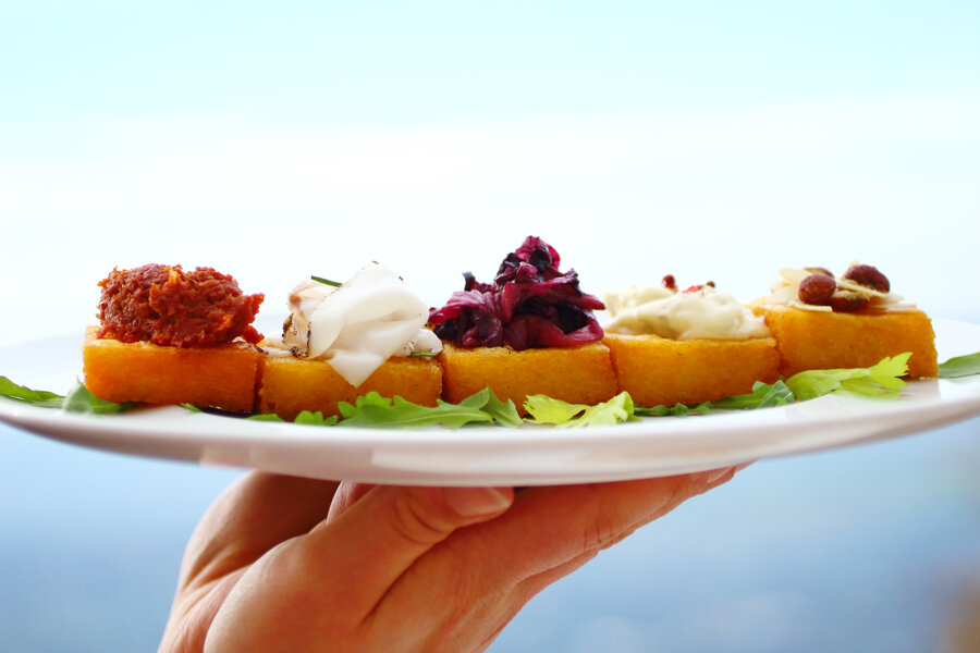 Crostini di polenta fritta conditi